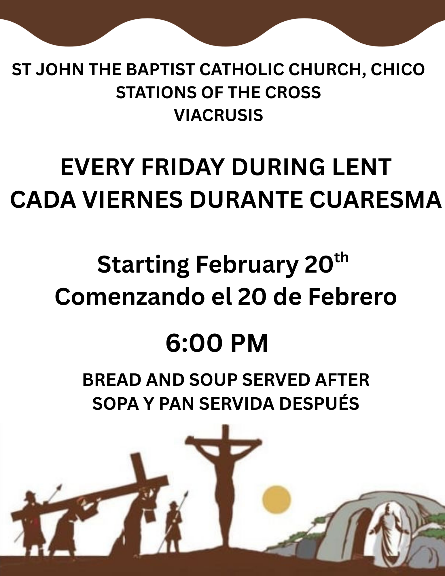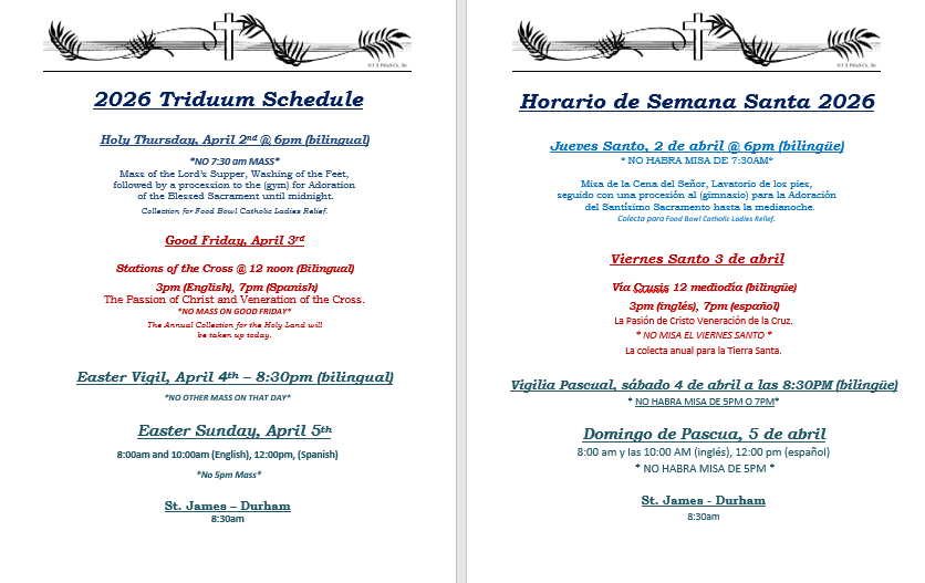 Saturday Vigil: 5pm (English) 7pm (Spanish)